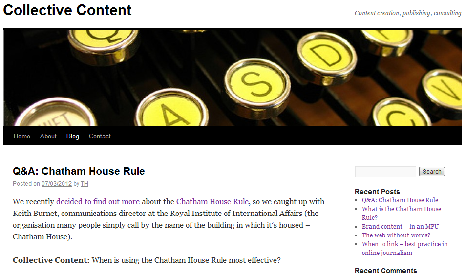 Over on my blog at the Collective Content website I’m turning off Comments, at least for a while. The level of spam (easily over 90% of comments submitted) is simultaneously depressing and ‘one of those things’.