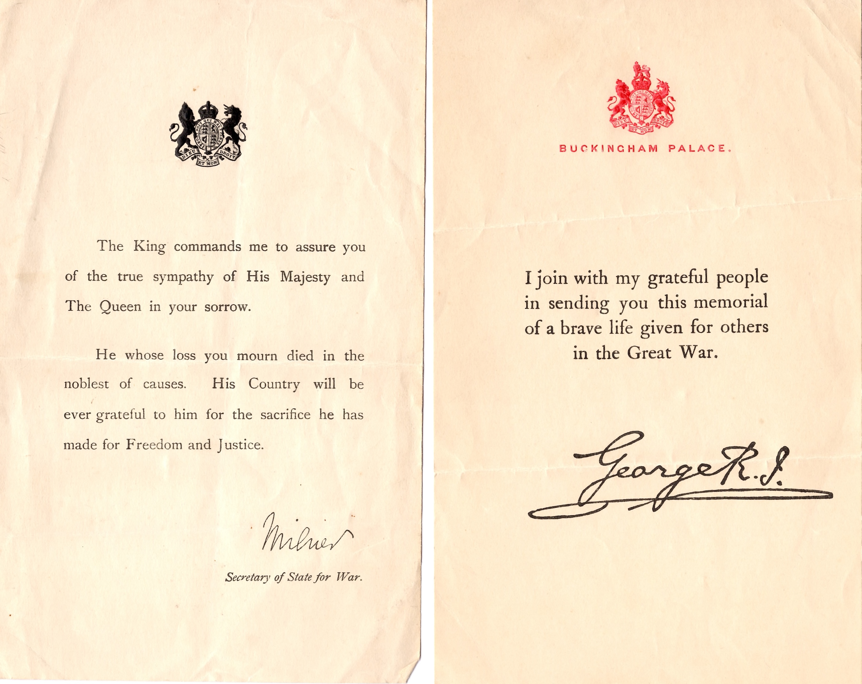 Today I look at the documents and photos around Billy and his death in a new light. I see medals, posthumous notes from the king that all relatives must have been sent, and the idea that it was all a noble cause – ‘His Country will be ever grateful to him for the sacrifice he has made for Freedom and Justice’. I guess I’m even surprised the state said thank you.