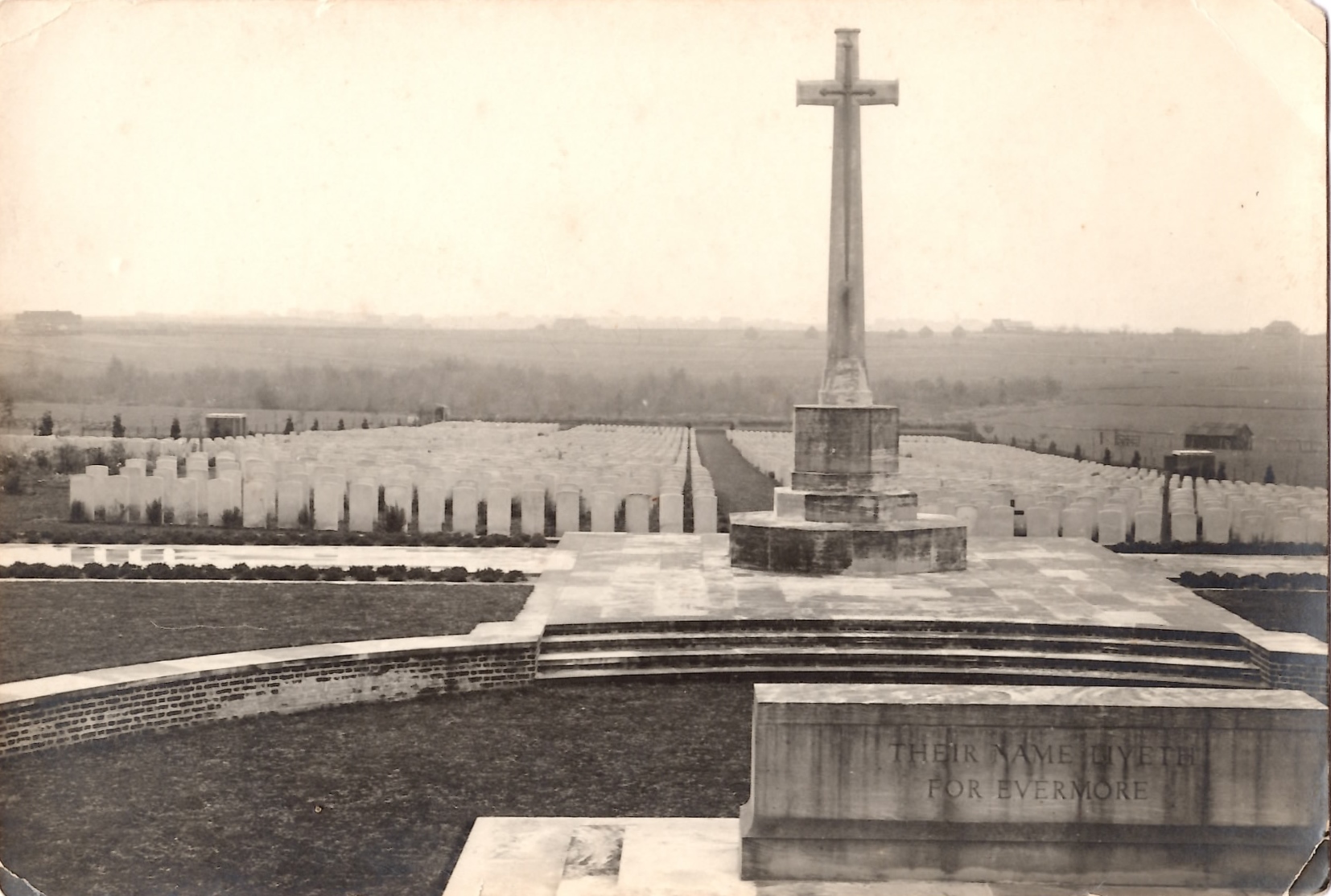 One is an up close shot. My deduction, in line with some other correspondence with the government, is that it was from the War Graves Commission in 1927 and basically showed Billy’s headstone in good condition, with the inscription just as I would see it last month. There is an impressive garland of flowers and when we visited I was struck but how perfectly the graves and greenery around them are maintained. It was the same throughout that part of Belgium, from large cemeteries like the one where Billy rests, with around 5,000 souls, to smaller ones with maybe 50 headstones. You see them dotted all over the countryside.