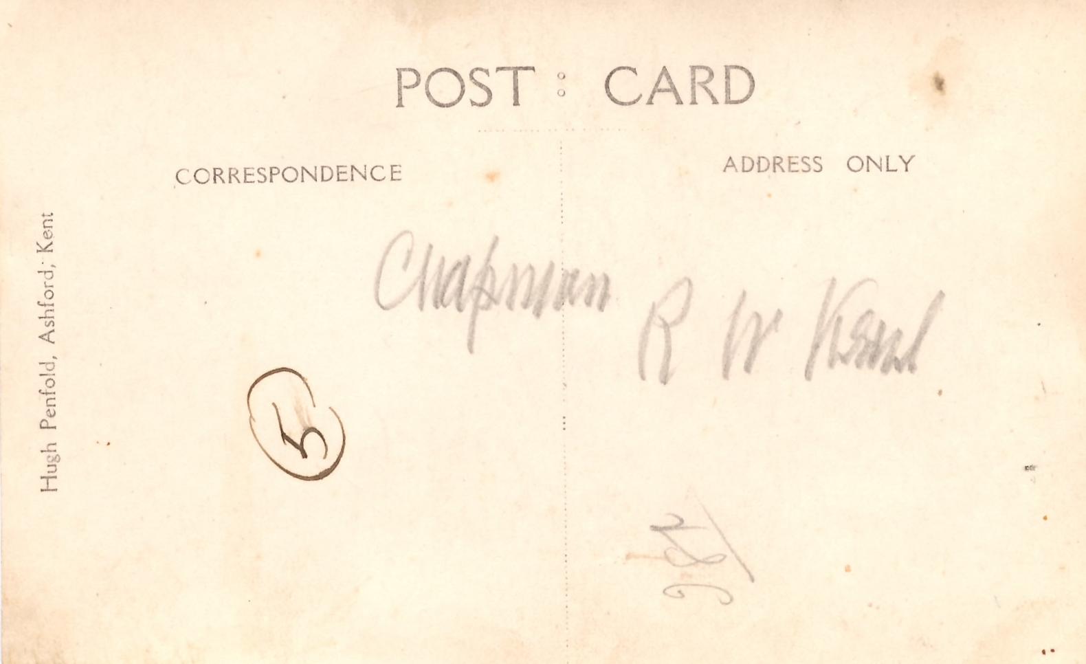 You can see it contains some wording which is another mystery. It shows an address on one end, for the photographer and studio, I assume – ‘Hugh Penfold, Ashford, Kent’. Then there is a number ‘5’ in pen, some small text in pencil (‘1st’, perhaps) and finally more words in pencil ‘Chapman RW Kent’.